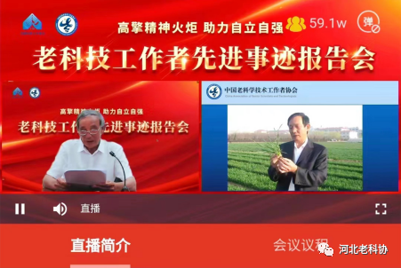 72岁的郭进考同志特邀在线上向全国老科技工作者讲述了他不忘初心、退而不休、继续追求卓越,带领团队克服重重艰难险阻,培育出“马兰1号”等系列小麦新品种,使河北小麦亩产大面积突破800公斤,为我国粮食战略安全再立新功的事迹。