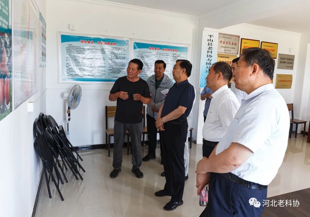 6月8日,省老科协常务副会长唐树钰、副会长张文军,在秘书长王建军等陪同下,就科普示范基地和老专家工作站建设等项工作到平山县进行调研。座落在南甸镇南策城村东部丘陵地带的南策城寿桃合作社,是省老科协科普示范基地之一,平山县老科协在这里设了老专家工作站。