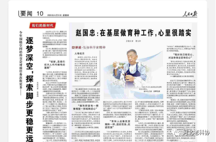 当天,新华社副总编刘学奎见到报道后,当即给赵国忠发微信表示祝贺,并在相关微信群全文转发了《人民日报》报道全文。他曾以新华社记者身份采访过赵国忠。