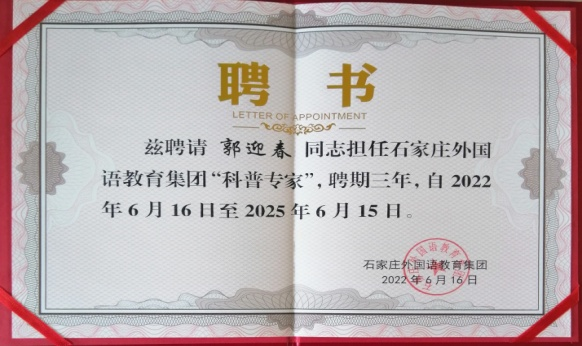 启动仪式上,河北省老科协气象分会常务理事郭迎春被聘请为科普专家。